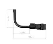 Univerzální feederový držák ve tvaru písmene L, vhodný pro použití například v kombinaci s držákem prutů, případně jako držák feederové síťky. Také jej lze použít jako samostatný zadní držák prutu. Disponuje úchytem s variabilním průměrem 25, 30 a 36 mm díky čemuž pasuje téměř na všechny standardně vyráběná křesla na trhu. Výhoda úchytu spočívá také v tom, že je opatřen klipem, díky kterému není nutné pokaždé sundávat z křesla celý systém. Jednoduše stačí odjistit klip a vytáhnout držák, zatímco úchyt zůstává připraven na křesle pro další lov. Devizou tohoto úchytu je také to, že je stejný u několika držáků ze série ATOMA. Díky tomu je možné držáky mezi sebou podle potřeby měnit bez nutnosti odmontování celého úchytu. Držák disponuje standardním závitem, ale také spojovacím konektorem, na kterém je závit s větším průměrem. Díky tomu k tomuto držáku "sedne" každý standardně vyráběný držák prutů, případně síťka. Technické parametry: Celková délka: 230mm Průměr: 16mm Průměr úchytu: 25,30,36mm