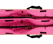 Dvoukomorové kaprařské pouzdro, určené speciálně pro něžnější pohlaví, jehož návrh vychází z úspěšné a velmi populární řady PORTA. Na první pohled upoutá svou specifickou růžovou barvou s efektními zlatými doplňky, přičemž je vyrobeno z velmi odolné textilie, která bez problémů odolá slabšímu dešti či vlhkosti způsobené rosou. Ve spodní části je navíc odolný, nepromokavý materiál umožňující postavení pouzdra na mokrou zem, aniž by došlo k jeho znehodnocení. Pouzdro je plně polstrované 6mm výstelkou na každé stěně, včetně předělovací přepážky. Tím pádem nehrozí při transportu 2 prutů jejich vzájemné poškození. Obě vnitřní komory na pruty jsou fixovatelné pomocí suchého zipu na jejich vrchu. K důkladné fixaci prutů přispívají také praktické pásky uvnitř komor. Díky rozšířené části pro uložení navijáků se dovnitř vejdou všechny standardně používané kaprařské sestavy, přičemž jsme mysleli i na pruty s naváděcími očky o průměru 50 mm, pro které je v jednotlivých komorách dostatek prostoru. Na boku pouzdra se nachází dlouhá kapsa se zipem, která poslouží například na transport podběráku nebo vidliček. Na ní je našita ještě jedna kapsa také s klipem, která na rozdíl od modelu PORTA není prošitá napůl, a tak poskytuje větší prostor a variabilitu. Další skvělá vychytávka, která jistě potěší všechny ženy, které se o sebe rádi starají i u vody, se nachází na ramenním popruhu, kde je na měkčené části umístěna malá kapsa s piktogramem rtěnky. Kromě kosmetických pomůcek je zde samozřejmě možné uložit například olůvka, případně jiné rybářské drobnosti. Kvalitní zipy s běžcem, komfortní rukojeť či ramenní popruh jsou taktéž součástí pouzdra, což jen dotváří jeho propracovanost a dává předpoklad k tomu, že pouzdro QUEEN nebude jen ozdobou každé dámské výbavy, ale bude mít také vysoce praktické využití. Technické parametry: Model: Delphin QUEEN 360-3 Vnější délka pouzdra: 145cm Délka boční kapsy: 110cm Pro pruty: 300cm / 3dílné Model: Delphin QUEEN 300-2 Vnější délka pouzdra: 170cm Délka boční kapsy: 110cm Pro pruty: 300cm / 2dílné Model: Delphin QUEEN 360-2 Vnější délka pouzdra: 200cm Délka boční kapsy: 108cm Pro pruty: 360cm / 2dílné