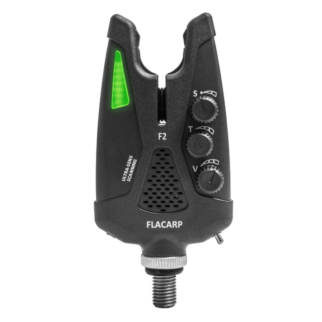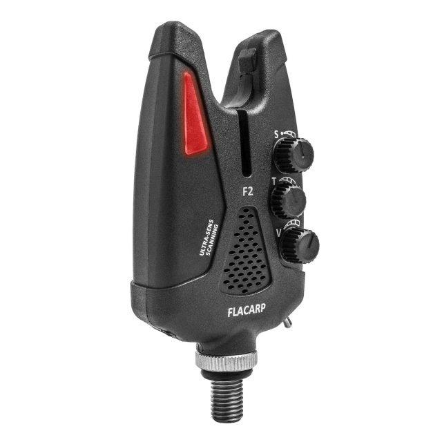 Špičkový signalizátor záběru české značky FLACARP, obdobný jako typ FLACARP F1 s tím rozdílem, že nemá integrován vysílač bezdrátového příposlechu.