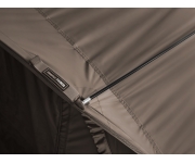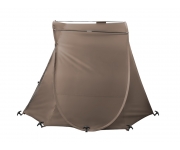 Vzhledem k požadavkům rybářů, kteří nemají dostatek času na dlouhé výpravy a upřednostňují spíše rychlé akce na jednu noc, přináší společnost Delphin na trh tento výjimečný a neuvěřitelně praktický „mini bivak“. Jeho podstata spočívá v takzvané „pop-up“ konstrukci, díky které jej lze extrémně rychle a bez námahy rozložit a složit. To je nespornou devizou u krátkých, rychlých vycházek, kde není zcela pohodlné nosit a rozkládat velký bivak. To ovšem není vše, co se týká výhod tohoto produktu. Jednou z nich je také rozměr bivaku a tvar ve složeném stavu. To jej umožňuje přepravovat vložený například ve složeném lehátku, díky čemuž nezabere prostor navíc a v případě potřeby tak bude pro vás mnohem snazší přenášení věcí na vzdálená, nedostupná místa. Přístřešek byl navržen rozměrově tak, aby se do něj vešlo jedno lehátko, přičemž stále zůstane prostor pro tašky, stolek a jiné potřebné příslušenství. Ve srovnání s jinými konkurenčními modely tohoto typu, má ten náš výrazný náskok díky větší hloubce, což znamená více místa pro vás a vaši výbavu. Přesto je velmi kompaktní a jeho rozměry tedy umožňují rozložit váš „camp“ i na velmi malých, těžko přístupných zarostlých místech. Jednoduše řečeno, všude tam, kde dokážete postavit lehátko, což by s velkým bivakem garážové konstrukce v mnoha případech možné nebylo. Vzhledem k tomu budete schopni pohodlně lovit na málo prochytávaných částech revíru a budete tak vždy o krok vpřed před ostatními rybáři. Navzdory svým kompaktním rozměrům překvapí po zakolíkování výbornou stabilitou a bez problémů snese i silnější vítr. Přední panel je osazen čtyřmi zipy, kterými je možno přizpůsobit si vchod, případně větrání podle potřeby. Také disponuje mosketeriovým oknem, díky kterému budete mít vždy přehled o tom, co se na vašem lovném místě děje. Na stropě bivaku je umístěn praktický háček, určený k zavěšení například lampy, případně bundy a podobně. Kapsa na zadní stěně zase umožňuje uschovat mobil, klíče, příposlech, které tak máte vždy po ruce. Pokud tedy patříte do skupiny rybářů, kteří rádi loví na hůře dostupných místech, případně upřednostňujete krátké rybaření, tak Delphin S1Quick se pro vás stane neocenitelným pomocníkem. Technické parametry: Celkové rozměry: 240x180x120cm Transportní rozměry: 75x75x10cm Hmotnost: 3kg