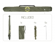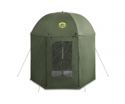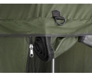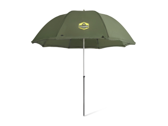Deštník s kompletně uzavíratelnou bočnicí Delphin THUNDER FullWALL je ideální volbou do nepříznivého počasí během kratších výprav. Perfektně ochrání před nepříjemným sluncem, ranní rosou, ale i vyšším úhrnem srážek. Pro lepší stabilitu ve větru je opatřen čtyřmi ukotvovacími lany. Švy deštníku jsou důkladně podlepeny voděodolnou páskou pro zajištění 100% nepromokavosti i v případě silného deště. Díky boční prodloužené stěně po celém obvodu budete před nepříznivými podmínkami chráněni ze všech stran. Bočnice disponuje dveřmi, které jsou opatřeny kvalitními zipy. Kromě toho se na dveřích nachází průhledné plastové okno, díky kterému budete z deštníku vidět na pruty i za deště. Spodní část boční stěny je osazena úchyty pro připevnění k zemi pomocí zajišťovacích kolíků, které jsou součástí balení. Výšku a sklon deštníku lze přizpůsobit podle potřeby, což zároveň usnadní jeho upevnění i v členitějším terénu. Technické parametry: Max.výška deštníku (až po vrch kopule): 215cm Max. výška deštníku (s upevněnou boční stěnou): 200cm Průměr přes kopuli: 250cm