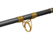 Po úspěšné sérii prutů HAZARD jsme se rozhodli připravit klenot sumcařské výbavy, kterým je limitovaná edice prutů Delphin HAZARD BxG. Náročné podmínky, extrémní přetížení a dlouhé silové souboje. Přesně to jsou podmínky, které prut HAZARD BxG očekává a je připraven se s nimi popasovat. Při stavbě prutu jsme využili všech poznatků z našich předchozích modelů prutů určených pro lov sumců, zejména na trhačku a lov s podvodními splávky. Tělo blanku je extrémně silné a odolné. Dlouhodobé přetížení blanku není nic, co by prut překvapilo a z dlouhodobého hlediska se blank nevytahá. Silové testy v laboratorních podmínkách však prokázaly přes 1,5 násobnou tuhost oproti konvenčním typům! Očka jsou samozřejmě celokovová a bezvýplňová. To zaručuje jejich extrémně dlouhou životnost. Trnovou spojku prutu jsme opatřili extra vrstvou X-Carbonu a splétaným ovinem. Navíc jsme zde vsadili i dva kovové pojistné kroužky. To dělá ze spojky - Achillovy paty většiny prutů, mimořádnou přednost Hazardu BxG! Dostatečně velký kovový kroužek pro zajištění háku nad rukojetí je už jen bonusem, který dostáváte k tomuto vyspělému nářadí pro lov kapitálních monster! Prut si navzdory své enormní síle zachovává díky použitým komponentům relativně nízkou hmotnost. O komfort při silovém zdolávání se však postará také pohodlná EVA pěna či koncovka na rukojeti, která je tvořena konektorem pro uchycení do zdolávacího opasku. Jedinečný design doplněný o očka zlaté barvy či žluto-černou EVA pěnu dodá vaší výbavě ten správný šmrnc a nenapodobitelnou originalitu. Technické parametry: Model: 255cm/505g Počet dílů: 2 Průměr blanku nad rukojetí: 15,5mm Počet oček: 9 Transportní délka: 135cm Hmotnost: 460g Rukojeť: dělená, EVA pěna Délka rukojeti (od spodní části prutu po střed sedla): 60cm Model: 285cm/505g Počet dílů: 2 Průměr blanku nad rukojetí: 15,9mm Počet oček: 11 Transportní délka: 152cm Hmotnost: 510g Rukojeť: EVA pěna Délka rukojeti (od spodní části prutu po střed sedla): 60cm Model: 310cm/505g Počet dílů: 2 Průměr blanku nad rukojetí: 16,6mm Počet oček: 12 Transportní délka: 163cm Hmotnost: 550g Rukojeť: EVA pěna Délka rukojeti (od spodní části prutu po střed sedla): 60cm