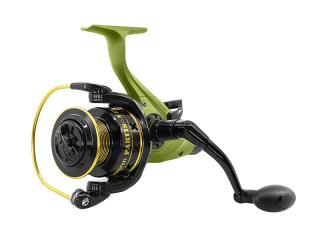 Univerzální naviják s volnoběžnou brzdou, který se díky svým technickým parametrům a nabízeným velikostem výborně hodí k lovu různých druhů kaprovitých a jiných ryb, ať už na těžko nebo feeder. Svým originálním designem se stane neokoukaným kouskem vaší výbavy a díky zelené barvě těla ideálně splyne s okolním přírodním prostředím. Základem navijáku je pevné ale lehké tělo z mimořádně odolného, tvrzeného ABS plastu, který bez problémů odolá i velké zátěži. Plynulý a hladký chod zajišťuje propracovaný vnitřní mechanismus s vyváženým rotorem a soustavou 3+1 kuličkových ložisek. Převodový poměr 5.2:1 umožní rychlé stahování montáže i bezproblémové zdolávání ryb. Pro pohodlnou manipulaci jsme naviják osadili kovovou kličkou s masivním pogumovaným madlem, které perfektně sedne mezi prsty. Citlivá volnoběžná brzda vám umožní přesné nastavení brzdné síly při záběru což nepochybně ocení množství příznivců tohoto systému. Během zdolávání ryb vám zase excelentně poslouží přední brzda, umožňující dokonalé dávkování brzdné síly podle potřeby. Samozřejmostí je hluboká kovová cívka, která disponuje zkosenou odhozovou hranou, pro snazší odvíjení vlasce během nahazování. Svojí kapacitou pojme dostatečné množství vlasce potřebného při lovu na větší vzdálenosti a to zejména u velikostí 6T a 7T. Cívka je navíc opatřena kovovým klipem, umožňujícím zaklipování vlasce za účelem co nejpřesnějších hodů na vaše krmné místo. V případě potřeby jsou k dispozici samostatně dokoupitelné hluboké i mělké náhradní cívky. Technické parametry: Model: Delphin PARTISAN 5T Kapacita hluboké cívky mm/m: 0.25/300, 0.28/240, 0.30/205 Kapacita mělké cívky mm/m: 0.25/150, 0.28/120, 0.30/105 Převodový poměr: 5.2:1 Počet ložisek: 3+1 Hmotnost: 377g Model: Delphin PARTISAN 6T Kapacita hluboké cívky mm/m: 0.25/430, 0.28/340, 0.30/300 Kapacita mělké cívky mm/m: 0.25/240, 0.28/190, 0.30/170 Převodový poměr: 5.2:1 Počet ložisek: 3+1 Hmotnost: 500g Model: Delphin PARTISAN 7T Kapacita hluboké cívky mm/m: 0.25/490, 0.28/390, 0.30/350 Kapacita mělké cívky mm/m: 0.25/340, 0.28/275, 0.30/240 Převodový poměr: 5.2:1 Počet ložisek: 3+1 Hmotnost: 526g