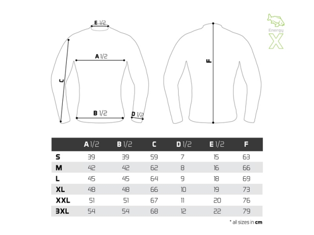 Nepodlehněte nástrahám chladného počasí a energicky vykročte na každou rybářskou výpravu s termoprádlem Delphin Energy X. Termoprádlo speciálně navržené pro rybáře, kteří milují volnost pohybu. Elastický materiál a ergonomický střih se dokonale přizpůsobí vaší postavě, díky čemuž budete nejen vypadat dobře, ale rovněž vám zajistí dokonalý komfort během nošení. Hřejivý materiál se postará o vaši teplotní pohodu a prodyšnost materiálu zároveň umožní tělu dýchat. Sportovní design v tmavě šedé barvě je doplněn o zeleno bílé logo a logo kapra na pravém rameni. Kromě rybolovu je termoprádlo vhodné i pro vyznavače aktivního životního stylu a pro každého, kdo si chce užít aktivní pobyt venku v suchu a teple. Správnou velikost oblečení si lze vybrat na základě velikostní tabulky. Vrchní díl Disponuje dlouhými rukávy a vyvýšeným límcem, což přispívá k udržení optimální tělesné teploty. Elastický límec, konce rukávů a spodní část jsou dodatečně prošívané pro zajištění dokonalého přilnutí ke kůži, aby se tím minimalizovaly úniky tepla. Spodní část vrchního dílu je mírně prodloužena, aby docházelo k ideálnímu krytí se spodky Delphin Energy X i při pohybově namáhavějších aktivitách. Spodní díl Pružný pás se svojí elasticitou přizpůsobí každému typu postavy a při nošení horního dílu zajistí jeho polohu i během aktivního pohybu. K udržení tepelného komfortu přispívá i zúžené ukončení spodního dílu v oblasti kotníků. Materiálové složení: 92% Polyester 8% Elastan