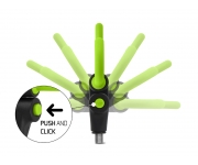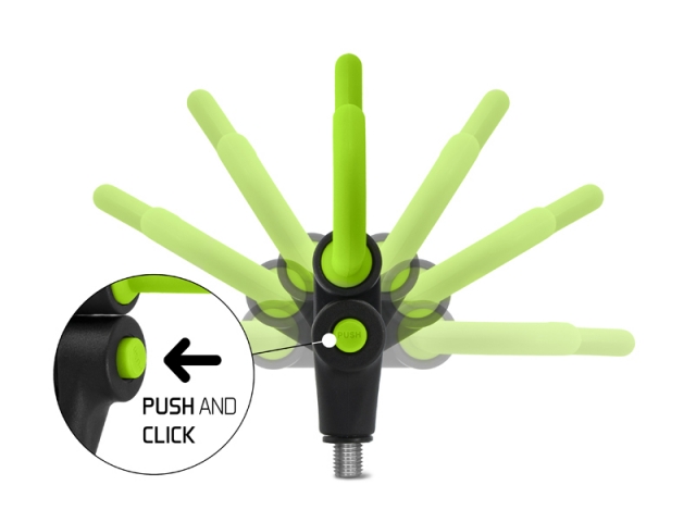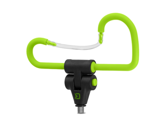 Držák na feeder tvaru L je výborným pomocníkem každého feederisty. Tvar držáku umožní udržet prut ve vidličkách i při silném záběru. Díky důmyslnému systému tlačítka ve spodní části, lze tento držák polohovat a následně polohu zajistit. Šířka ramen je 17cm. Držák je osazen univerzálním závitem a je kompatibilní s většinou vidliček a stojanů dostupných na trhu. Barevná zeleno-černá kombinace dokonale doplňuje feederovou řadu REAXE.