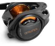 Baitcastový naviják RUNIX nezklame ani při lovu těch nejsilnějších predátorů našich vod. Při srovnání s klasickým navijákem s přední brzdou přináší hned několik výhod jako například větší sílu při navíjení, intenzivnější kontakt s nástrahou či ovládání navijáku jednou rukou. 7 kuličkových ložisek z nerezavějící oceli dodává navijáku odolnost, plynulý chod a zároveň možnost jednodušších hodů na větší vzdálenosti. Převodový poměr 6,3:1 umožňuje lovci, zejména při vertikálním lovu, pracovat s nástrahou s vysokou precizností. Při spouštění a nahazování nástrah oceníte citlivou magnetickou brzdu, která zamezí nechtěnému motání šňůry. Naviják je také vybaven POWER rukojetí určenou pro silové zdolávání, pomocí které můžete ve srovnání s klasickou kličkou vyvinout během zdolávání podstatně větší sílu. Při přetížení nastavené bojové brzdy se z navijáku začne odvíjet vlasec, což oznámí také brzdný systém, který je vybaven indikací přetížení brzdy. Jeho hmotnost je pouhých 262g! Díky tomu je i dlouhodobé používání bezproblémové a nepřetěžuje ruku lovícího. Ocení jej zejména lovci dravých ryb, kteří baitcastové navijáky používají při lovu spolu s pruty typu 'baitcast', nebo pruty určenými pro vertikální přívlač z lodi či belly boatu. Technické parametry: Model: Delphin RUNIX Kapacita navijáku mm/m: 0.30/270, 0.35/220, 0.40/190 Převodový poměr: 6,3:1 Počet ložisek: 6+1 SS Hmotnost: 262g