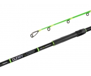 Inspirací při vývoji a designu tohoto prutu, nám byl zejména lov kaprů v deltě řeky Dunaj, kde se loví nejčastěji z lodi, na krátkou vzdálenost. I proto nese výstižný název Dunay Carp a vyznačuje se specifickými vlastnostmi, které jsou přizpůsobeny právě takovému stylu lovu. Výrazně kónicky tvarovaný blank prutu je vyroben z hustě vrstvených uhlíkových vláken, která dodávají vysokou pevnost a odolnost potřebnou při souboji se silnými říčními rybami. V koncové části blanku je výrazná špička ve fluo zelené barvě, která umožňuje snazší detekci záběru a vylaďuje celkovou akci prutu. Prut je vybaven pevnými dvoustopkovými očky se SIC výplní, které jsou dimenzovány i na ty nejnáročnější podmínky. Navzdory své robustnosti a pevnosti je prut velmi lehký a skvěle vyvážený, což umožňuje bezproblémové a přesné nahazování i s těžkými zátěžemi. Speciálně tvarované sedlo poskytuje komfortní úchop a umožňuje spolehlivé pevné upnutí navijáků. Krátká rukojeť, jejíž délka byla navržena tak, aby manipulace s prutem byla komfortní i ve člunu, kde je často málo místa. Konec rukojeti je opatřen protiskluzovým shrink materiálem pro pohodlný úchop. Technické parametry: Model: 240cm/200g Počet dílů: 2 Průměr blanku nad rukojetí: 16,2mm Počet oček: 10 Transportní délka: 124,5cm Hmotnost: 206g Rukojeť: Shrink Délka rukojeti (od spodní části prutu po střed sedla): 42cm Velikost naváděcího očka: 25mm