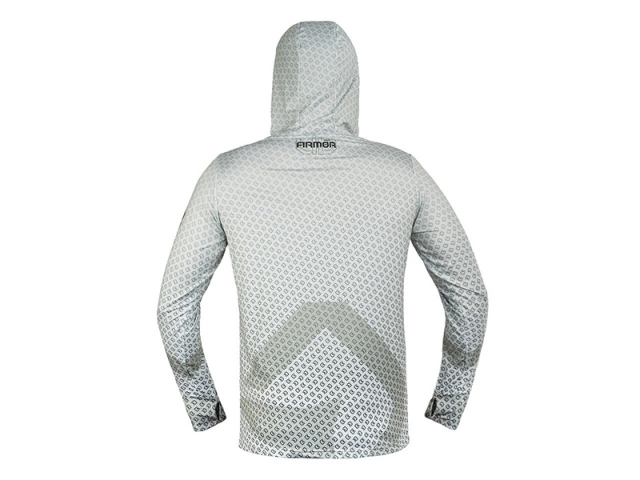 Tričko s kapucí Delphin UV ARMOR 50+ poskytuje důkladnou ochranu před přímým slunečním zářením během letních dnů. Použitá látka s ochranou UPF 50+ zabrání spálení citlivé pokožky a zároveň na dotek příjemně chladí i během nejteplejších dnů. Mysleli jsme také na nejpřehřívanější část těla, hlavu. Triko je vybaveno výrazně vyvýšeným límcem a kapucí, ale také prodlouženými rukávy s otvory na palec, což zvyšuje ochranu rukou. Velkou výhodou příjemného, elastického materiálu je schopnost rychlého vyschnutí v případě namočení během lovu. Samotné tričko je vysoké kvality, stejně jako použitý barevný potisk. Nabízíme je v široké škále velikostí od S, až po XXXL. Také v nabídce naleznete dvě barevná provedení v barvách Olive pro příznivce naturálních barev a barvě Neon pro příznivce výraznějších barev. Složení: 90% polyester, 10% elastan