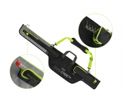 REAXE DualCASE je dvoukomorové pouzdro speciálně navržené pro pohodlné uložení a transport prutů a dalšího náčiní určeného pro lov feederovou technikou. Vyznačuje se velkorysým vnitřním prostorem, což v praxi znamená, že v pouzdru budete mít vždy dostatek místa pro různé modely feederových prutů a nestane se, že by konkurenční model prutu do našeho pouzdra nepasoval. Pouzdro je navrženo v černo-šedé barvě s výraznými zelenými doplňky a je vyrobeno z odolné textilie, která bez problémů odolá slabšímu dešti, vlhkosti způsobené rosou a hrušímu zacházení. Ve spodní části je navíc odolný, nepromokavý materiál umožňující postavení pouzdra na mokrou zem, aniž by došlo k jeho znehodnocení. Pouzdro je na všech stěnách včetně předělovací přepážky plně polstrované měkkou výstelkou. Tím pádem nehrozí při transportu 2 prutů jejich vzájemné poškození. Díky rozšířené části pro uložení navijáků se dovnitř vejdou všechny standardně používané feederové sestavy. Pouzdro je vybaveno vnější kapsou T-PROTECT, která je speciálně určena pro uložení tubusu s feederovými špičkami. Kapsa je také vyrobena z odolné pogumované tkaniny, díky které budou náhradní špičky lépe chráněny. Na téže straně se nachází podélná kapsa HOLDER POCKET se zipem, která je určena pro naše feederové držáky z řady REAXE, případně další menší příslušenství. Na opačné straně se nachází podélná kapsa s plastovým klipem a zipem určená pro skládací podběrák nebo podběrákovou tyč. V jeho spodní třetině se nacházejí další dva otvory určené pro zasunutí vidliček, doplněné zatahovacím popruhem určeným k jejich zafixování. Kvalitní a dostatečně velký odepínatelný ramenní popruh a dvě látkové rukojeti usnadňují transport pouzdra a jeho ukládání. Mohutné zipy s kvalitními běžci a promyšlenými úchyty umožňují komfortní uzavření jednotlivých částí pouzdra. Technické parametry: Model REAXE DualCASE 125cm Rozměry: 125 x 30 x 11cm Rozměr kapsy: 118 x 10cm Rozměr kapsy T-protect: 68 x 5cm Rozměr kapsy Holder pocket: 40x 9cm Model REAXE DualCASE 140cm Rozměry: 140 x 30 x 11cm Rozměr kapsy: 131 x 10cm Rozměr kapsy T-protect: 68 x 5cm Rozměr kapsy Holder pocket: 40x 9cm Model REAXE DualCASE 150cm Rozměry: 150 x 31 x 11cm Rozměr kapsy: 140 x 10cm Rozměr kapsy T-protect: 68 x 5cm Rozměr kapsy Holder pocket: 40x 9cm Model REAXE DualCASE 165cm Rozměry: 165 x 30 x 11cm Rozměr kapsy: 155 x 10cm Rozměr kapsy T-protect: 68 x 5cm Rozměr kapsy Holder pocket: 40x 9cm