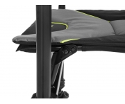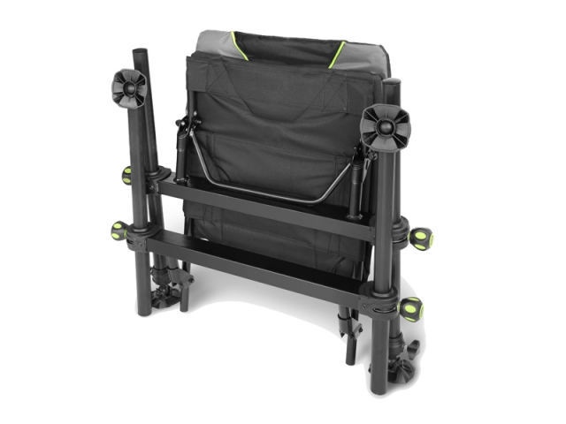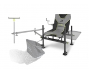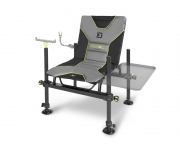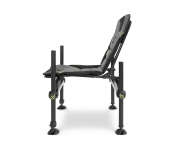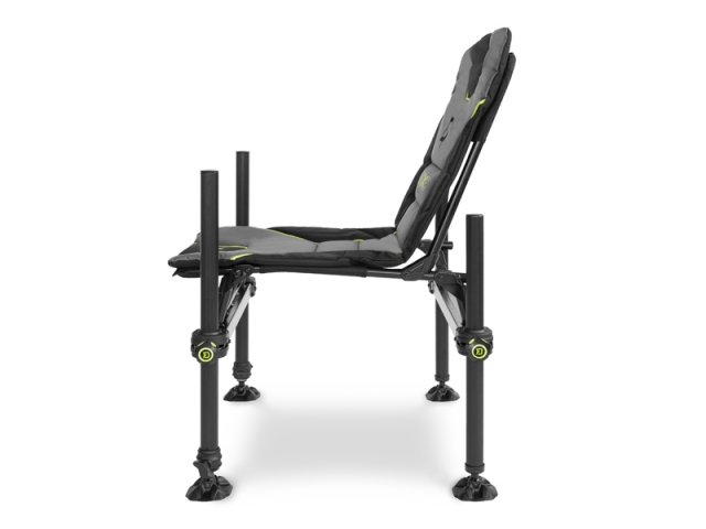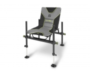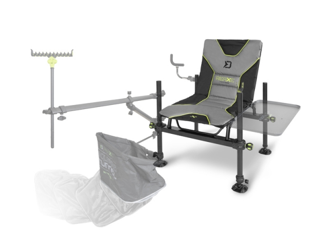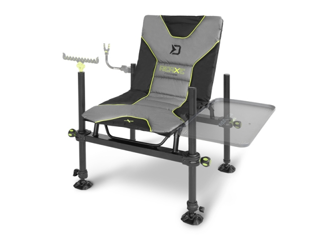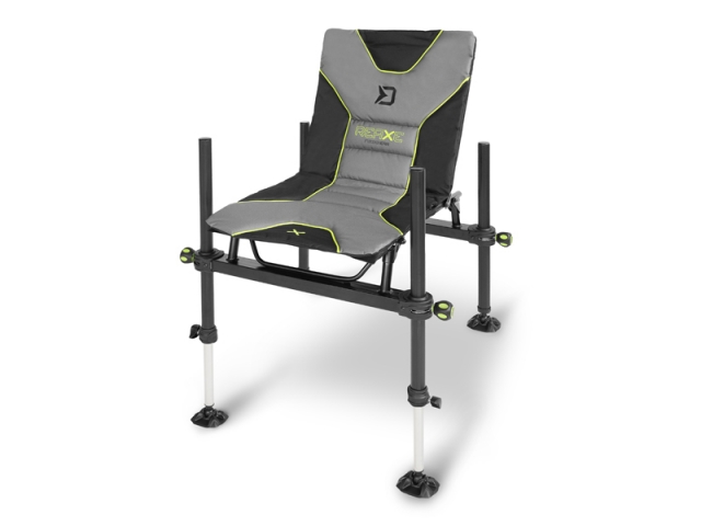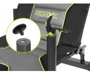 Exkluzivní feederové křeslo, spojující vlastnosti klasických rybářských křesel a luxusních závodních beden. Je postaveno na pevném kovovém rámu se čtyřmi otvory pro výsuvné nohy, které jsou vybaveny mohutnými šrouby s velkými pogumovanými madly. Šrouby jsou otočné kolem osy otvoru a tím pádem je lze zatáhnout ve více pozicích, čímž poskytují větší variabilitu během nastavování výšky nohou. Hrubé hliníkové nohy disponují velkými patkami s kloubovým uchycením a jsou tedy nastavitelné pro různý sklon a nerovnosti terénu. Přední nohy jsou zároveň teleskopické a také výsuvné z kovové konstrukce, takže zvládnou také lov na hrázích a jiných šikmých plochách. Na vrchu předních nohou se nacházejí univerzální závity, které lze využít pro uchycení různých feederových držáků nebo jiných doplňků. Sedací část je tvořena měkkou matrací, která umožňuje komfortní sezení během celodenního lovu. Barevně je laděna do šedo-černa, s výraznými zelenými doplňky ve stylu REAXE. Křeslo je také kompatibilní s naším feederovým ramenem ProfixARM, se stolkem FlatWORX, případně s dalšími držáky s odpovídajícím průměrem otvoru. Po ukončení lovu lze nohy z křesla vytáhnout a sklopit konstrukci, čímž křeslo nabude skutečně kompaktní celkové rozměry, které vám usnadní následný transport. Technické parametry: Rozměr sedáku: 50x50cm Výška zádové opěrky: 53cm Výška sedáku: 27-70cm Hmotnost křesla: 5,6kg Hmotnost nohou: 2,6kg Přepravní rozměry:75x69x13cm Průměr nohou: 36mm Celková výška: 84 - 127cm Šířka: 65 - 85cm Přední nohy: max. 116cm, min. 67cm Zadní nohy: 60cm