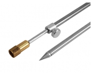Velmi pevná, stabilní, teleskopická vidlička s hrotem. Vyrobena je z oceli, díky čemuž je výjimečně pevná. Vrchní část vidličky je osazena závitem, kompatibilním s elektronickými signalizátory záběru nebo různými úchytkami. Požadovanou výšku nastavíte jednoduše pomocí závitu
