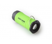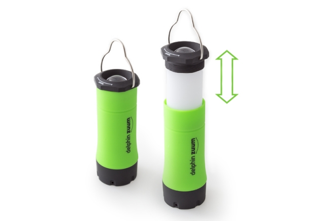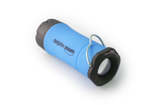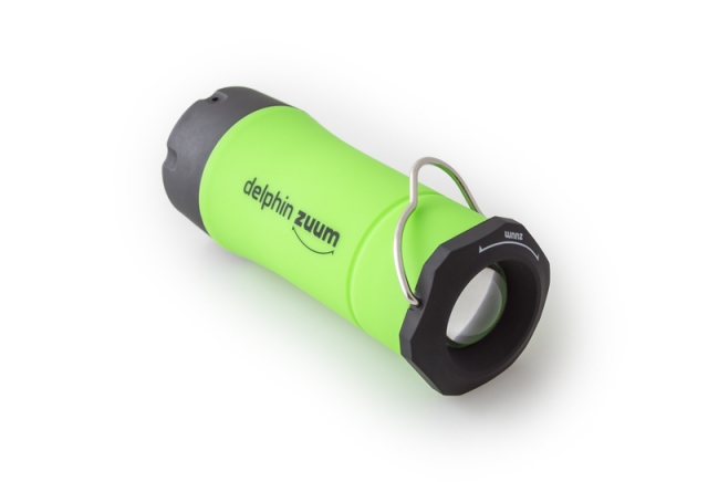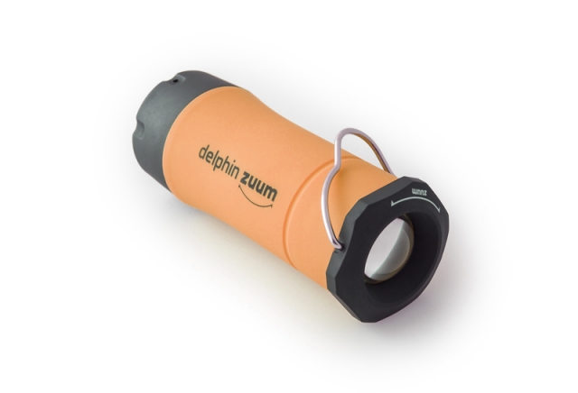 Příruční svítidlo, bez kterého se odteď neobejde žádná vaše vycházka k vodě. Delphin ZUUM je díky kompaktním rozměrům lehko přenosný a díky své multifunkčnosti přímo nenahraditelný společník za zhoršených světelných podmínek. Je ho možné použít jako klasické svítidlo do ruky, kdy světlo svítí přímým směrem z otočné hlavice. Pootočením je ale možné povytáhnout středovou část a udělat tak z baterky svítilnu. Tato svítilna sama stojí a navíc díky profilovanému drátěnému háčku ji můžete bez problémů i zavěsit. Tím ale výčet vlastností stále nekončí. Samotná LED dioda ve vnitřku má tři úrovně svícení: silné světlo, tlumené světlo a blikající stroboskop. Možnosti Delphin ZUUM jsou tedy nekonečné, od klasického ručního svítidla přes závěsnou svítilnu, světlo do bivaku, poziční světlo... ZUUM je nabízený ve 3 barevných provedeních těla: zelená, oranžová a modrá.