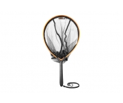 Bezchybně zpracovaný přívlačový podběrák, který dokonale splní všechny vaše požadavky. Díky preciznímu zpracování nenajdete na jeho vyhotovení ani jedinou chybičku. Jemná černá síťka je osazena v lehkém, ale velmi pevném hliníkovém rámu. Díky jemnosti síťky nehrozí poškození žádného úlovku. Podběrák je dokonale ergonomicky tvarován a rukojeť má jemné prohnutí umožňující snadné podebrání ryby. Díky speciální konstrukci je rukojeť velmi lehká, ale dostatečně pevná. Nadnáší dokonce podběrák ve vodě a nedovolí mu okamžitě klesat ke dnu po nechtěném pádu. Ukončena je pryžovým popruhem s karabinou, která umožňuje pohodlné uchycení podběráku. Technické parametry: Pogumování: Ne Velikost očka: 2x2m Délka popruhu: 35cm