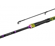 Zhypnotizujte všechny velké dravce! Pruty pro všechny, kterým nic neříkají zažité konvence. Na první pohled upoutá rukojeť, která je tvořena barevnou kamufláží s použitím barev zářivá zelená, hnědá a zelená. Nad touto "hypnotickou" rukojetí najdeme decentní korkové detaily a v celé spodní třetině prutu najdeme i fialové zdobení vyvázané nití. Matný šedý blank a černé vázání oček činí z tohoto prutu elegantního společníka u vody, zatímco moderně laděná spodní část okamžitě upoutá pozornost. Poloparabolická akce na tužším blanku činí z tohoto modelu velmi účinnou zbraň na velké dravce, které prut dokáže pohodlně vypružit v celé své délce a klidně zdolat i srdnaté štiky či menší sumce. Technické parametry: Model: 210cm / 60g Počet dílů: 2 Počet oček: 8 Průměr blanku nad rukojetí: 10mm Transportní délka: 110cm Hmotnost: 120g Rukojeť: EVA pěna a NEO-FOAM Délka rukojeti (od spodní části prutu po střed sedla): 33cm Model: 240cm / 60g Počet dílů: 2 Počet oček: 8 Průměr blanku nad rukojetí: 11mm Transportní délka: 125cm Hmotnost: 150g Rukojeť: EVA pěna a NEO-FOAM Délka rukojeti (od spodní části prutu po střed sedla): 36cm Model: 260cm / 60g Počet dílů: 2 Počet oček: 9 Průměr blanku nad rukojetí: 11mm Transportní délka: 135cm Hmotnost: 164g Rukojeť: EVA pěna a NEO-FOAM Délka rukojeti (od spodní části prutu po střed sedla): 37cm Model: 300cm / 60g Počet dílů: 2 Počet oček: 8 Průměr blanku nad rukojetí: 17mm Transportní délka: 155cm Hmotnost: 200g Rukojeť: EVA pěna a NEO-FOAM Délka rukojeti (od spodní části prutu po střed sedla): 39cm