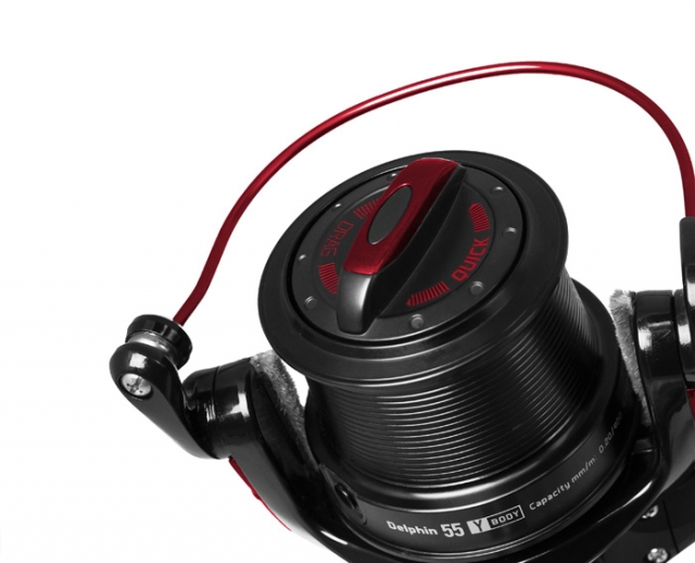 Naviják RAYA jsme od počátku navrhovali jako model určený na nahazování, lov z člunu či typický "stalkingový" naviják. Tento model však můžeme klidně doporučit i jako velmi vhodný naviják na těžký feeder. Relativně malé tělo zhotovené z tvrzeného plastu s velmi vydařeným matným černo-červeným designem je osazeno mělkou kónickou cívkou. Ta má navíc odhozovou hranu, takže nahazování bude velmi pohodlné, rychlé a přesné. RAYA má Quick Drag brzdu, díky které dokážete cívku na jedno pootočení ihned zastavit. V balení naleznete i Slow Drag brzdu. Kovová klika má pohodlné gumové madlo. V rotoru se nacházejí kartáče, které zabraňují sklouznutí vlasce pod cívku. Už na první uchopení je RAYA masivní naviják. Je to zejména kvůli jeho vnitřnímu mechanismu, kde jsme použili odolný a ověřený mechanismus ozubených kol. S navijákem budou kompatibilní všechny náhradní cívky s označením Y. Výběr cívky tak bude velmi přehledný a jednoduchý a pokud si koupíte i jiné navijáky s tělem označeným jako "Y", všechny tyto cívky budete moci mezi těmito typy kombinovat. Technické parametry: Model: Delphin RAYA 55 Y body Kapacita cívky mm / m: 0.20 / 400, 0.25 / 290, 0.28 / 230 Převodový poměr: 4.8: 1 Počet ložisek: 6 + 1 Hmotnost: 584g Kompatibilní cívky: Model: Delphin 55 Y body Kapacita cívky mm/m: 0.20/400, 0.25/290, 0.28/230 Model: Delphin 60 Y body Kapacita cívky mm/m: 0.28/320, 0.30/270, 0.32/240 Model: Delphin 70 Y body Kapacita cívky mm/m: 0.28/660, 0.30/580, 0.32/510 Pro naviják Delphin RAYA 55 Y body jsou kompatibilní karbonové podložky brzdy Y body.