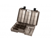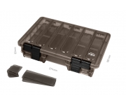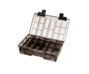 TBX Duo 274-11P Clip je multifunkčná krabička určená na uloženie rybárskeho príslušenstva. Vyrobená je z tmavosivého plastu a s vekom zo sivého transparentného plastu, takže máte vždy prehľad o uložených veciach vo vnútri krabičky. DUO znamená dva oddelené úložné priestory a to jeden z vrchnej a druhý zo spodnej časti s dômyselným otváraním. Vybavená je praktickými externými klipmi z čierneho plastu. Technické parametre: Rozmer: 274x180x63mm Počet pevných priehradiek: 11 Rozmer priehradky: 6x(4x16x2,5cm), 4x(12,5x3,8x3,5cm), 1x(11,5x16x3,5cm) Počet vkladateľných priečinkov: 19