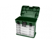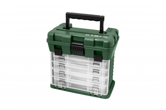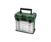 Delphin TBX MegaCase Clip je zajímavě řešený kufřík v kombinaci s prostorem pro 4 plastové krabičky. Velmi dobře poslouží pro uložení nástrah nebo ostatního rybářského příslušenství. Uzavírá se jedním plastovým klipem, který pevně drží vrchní výklopný díl. Pod ním se nachází dostatečně velký úložný prostor na odkládání všeho, co rybář potřebuje. V přední části se nachází výklopný díl z průhledného materiálu. Jím se dostanete ke 4 stejně velkým plastovým krabičkám, které jsou součástí kufříku. Krabičky obsahují plastové příčky, aby si každý rybář mohl přihrádky v krabičkách přizpůsobit podle vlastních představ. Je dodáván v kombinaci barev tmavozelená s transparentním poklopem. Parametri tehnici: Dimensiuni: 290x190x265mm Numărul compartimentelor fixe: 5 Dimensiunile compartimentului: 1x(26,5x16x7cm), 4x cutie de plastic cu dimensiunile de 23,5x12,7x3,2cm cu de 3x compartimente interne 22,5x3,5x2,7cm şi 10x despărţitoare Numărul cutiilor introductibile: 4