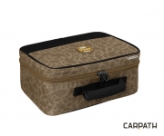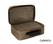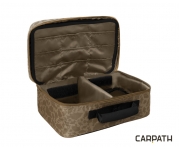 Taška na bižuterii Delphin Area TACKLE Carpath je praktická polstrovaná taška určená především na odkládání rybářské bižuterie. Hlavní úložný prostor je oddělen vyjímatelnou polstrovanou přepážkou na suchý zip, kde můžete uložit krabičku s návazci, olůvky nebo si tam můžete odložit i signalizátory záběru. Uprostřed se nachází přepážka, která je navržena na vkládání sáčků s háčky, obratlíky, stopery a jiným příslušenstvím používaným při sestrojování koncových montáží. Určitě si zde najdou místo i malé cívky s návazcovými šňůrami. Na každé straně přepážky se nachází 9 odkládacích kapes. Na vrchní straně najdeme větší kapsu na zip, do které je možné uložit doklady nebo jiné příslušenství, jako například jehly, vrtáky, nůžky nebo peán. S taškou TACKLE budete mít napříště veškerou svou kaprařskou bižuterii na jednom místě! Technické parametry: Rozměry: 30x20x14cm Vnitřní kapsa: 29x15cm Rozměr přepážek uvnitř: 18ks 9x5cm Kamufláž Carpath je unikátním a patentovaným designovým vzorem, který v sobě skloubil maskovací vizuál kamufláže a siluety kaprů, které tuto kamufláž tvoří. Tento jedinečný a neopakovatelný návrh pochází kompletně z dílny značky Delphin a posouvá hranice vašeho rybářského vybavení do zcela nové dimenze.